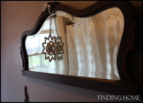 It was too pretty to get lost on the tree, so I put in on this old mirror in the bathroom where it could really shine.